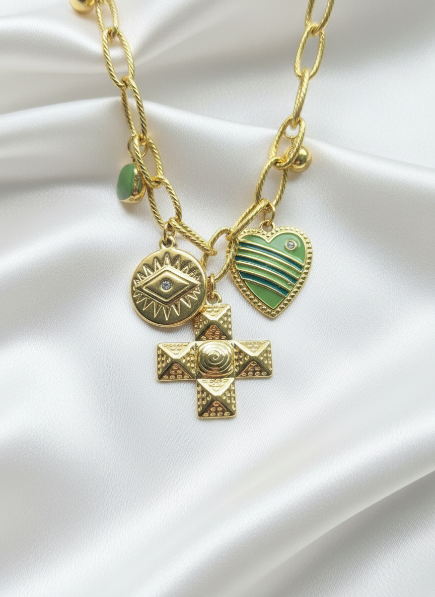 Bracciale realizzato in acciaio inossidabile anallergico con ciondoli.
